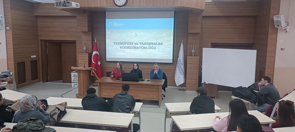 With the participation of Teknofest and Competitions Coordinator Assoc. Prof. Dr. Levent Gökrem and presentations by Teknofest and Competitions Assistant Coordinator Research Assistant Elif Bulut and Teknofest Corporate Coordination Representative Research Assistant Yasemin Boy, students and academics were informed about the path to follow in the project development process, from the idea stage to the competitions.