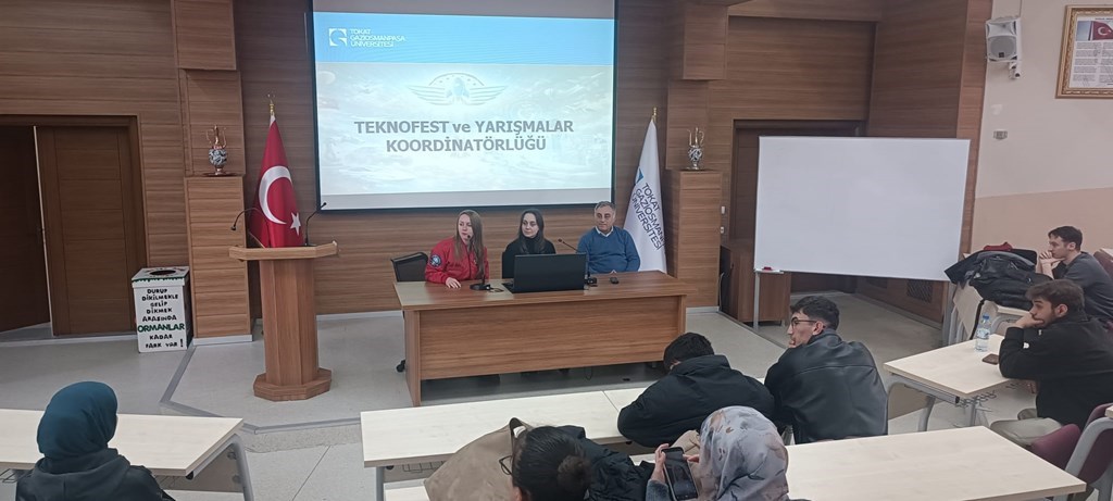 Öğrencilerimize yönelik; Teknofest ve Yarışmalar Koordinatörlüğü "Tanıtım Günleri" & Proje 26 Ligi "Fikrinle Parla Projenle Yüksel!" başlıklarında bilgilendirme etkinliği düzenlendi.