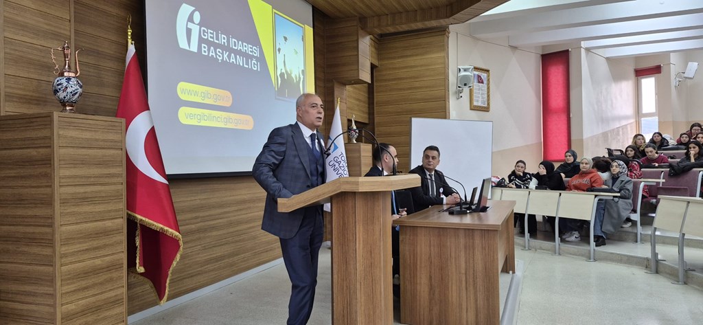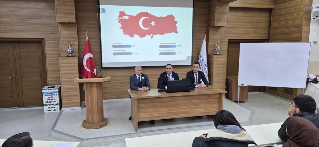 Meslek Yüksekokulumuzda Tokat Defterdarlığı tarafından Vergi Haftası kapsamında, Bölümümüz öğrencilerinin de katıldığı; "Gelir İdaresi Başkanlığının Yapısı, Görevleri ve Sunduğu Hizmetlere İlişkin Bilgiler ile Kariyer İmkânları" konularında söyleşi gerçekleştirildi.